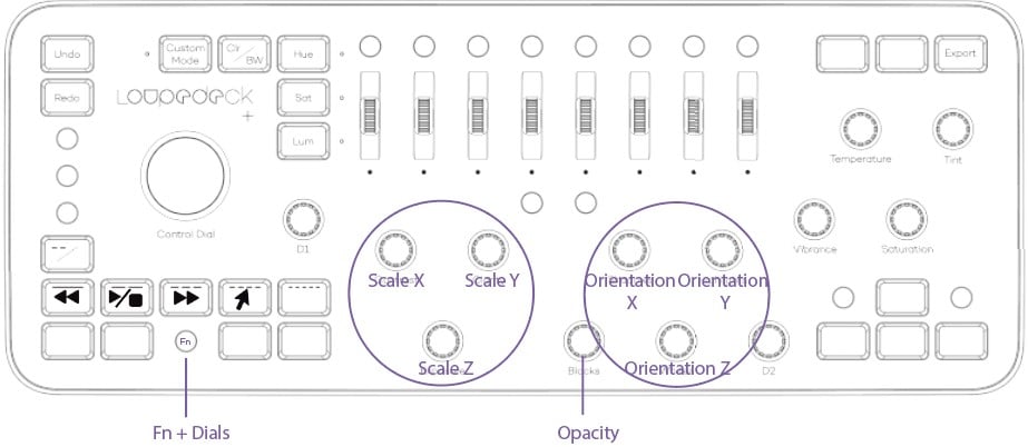 - Rotating Fn + Exposure, Contrast, and Clarity dial will edit the X, Y, and Z Scale.