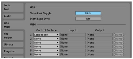 Before CT/Live can work with Ableton Live, you must 1) first run the installer and 2) activate "LOGI PLUGIN" (or "Loupedeck in 5.9 and previous versions) as a control surface in the MIDI setup section of Live’s preferences.