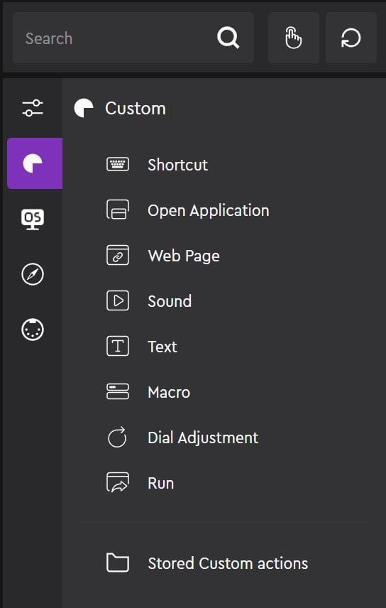 - Sound: Play a sound directly from the Loupedeck application and choose the volume and output for the sound.