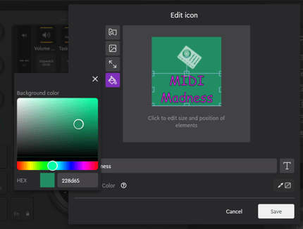 Now you can customise the look of your action. Choose the background color, font and font color and the icon for the touch button action. You can move the icon and the text elements in the editing space however you like! Read more in this article