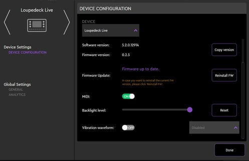 Note that while using Windows OS, your Loupedeck device can be used as a MIDI device in only one application at a time.