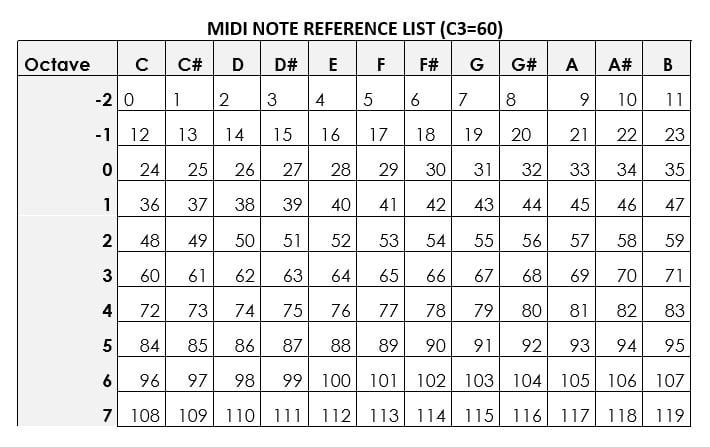 - Note name or you can alternatively insert the note number from the MIDI note reference list