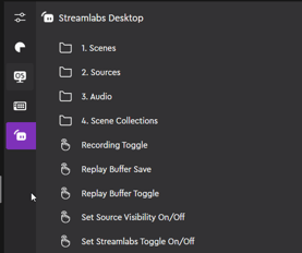 In this new Streamlabs Desktop plugin version, introduced along with the 5.8. release, you can find your scenes and sources in dynamic folders in the action panel. The dynamic folders are only visible and their actions can be assigned when the Streamlabs Desktop application is running in the background.
