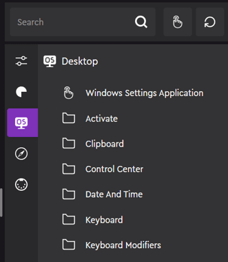 Desktop actions include a large variety of shortcut and productivity actions such as a control center for the Volume Mixer and also widgets like Stop Watch.